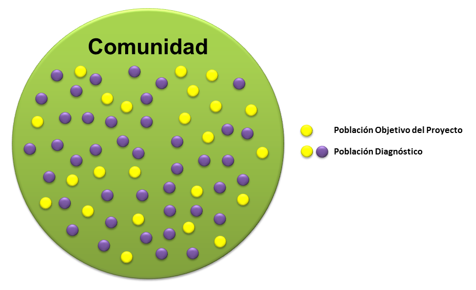 - Población Objetivo. La línea de base recoge información de aquella población con la que trabaja directamente el proyecto; a diferencia de un diagnóstico que trabaja con una población general, mucho más amplia y sus resultados ayudan a identificar a la población objetivo con la que trabajará el proyecto.