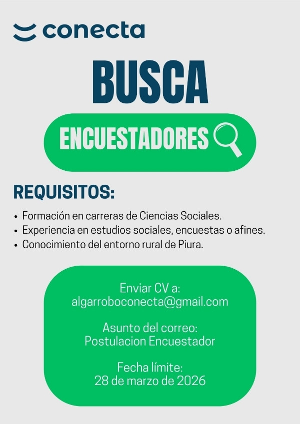 Interesados enviar CV al correo: algarroboconecta@gmail.com